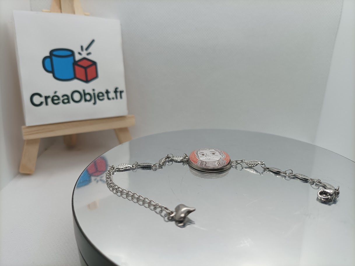 💎 Bracelet Cabochon – longueur 20 cm, médaillon Ø 2 cm, personnalisable avec l’image ou le message de votre choix.