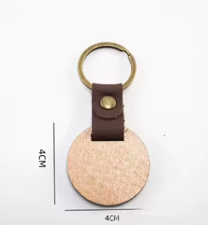 🪵 Porte-clés rond en bois gravable au laser avec bracelet en cuir – 4 × 4 cm - Boutique