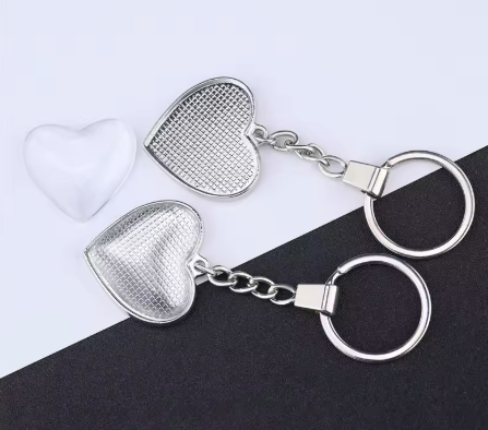Ce porte-clés en métal argenté séduit par sa forme de cœur élégante et sa finition brillante. Grâce à sa personnalisation recto-verso, il devient un véritable bijou du quotidien : photo, texte ou combinaison des deux, à vous de choisir la touche personnelle qui le rendra unique.